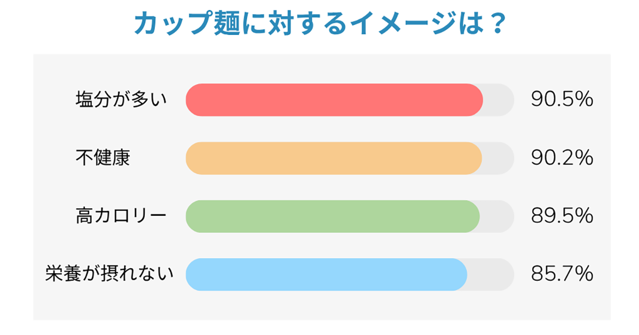 カップラーメンに対して、「手軽でおいしいけれど、健康に悪そう……」というイメージを抱いてる人が多いようです。
