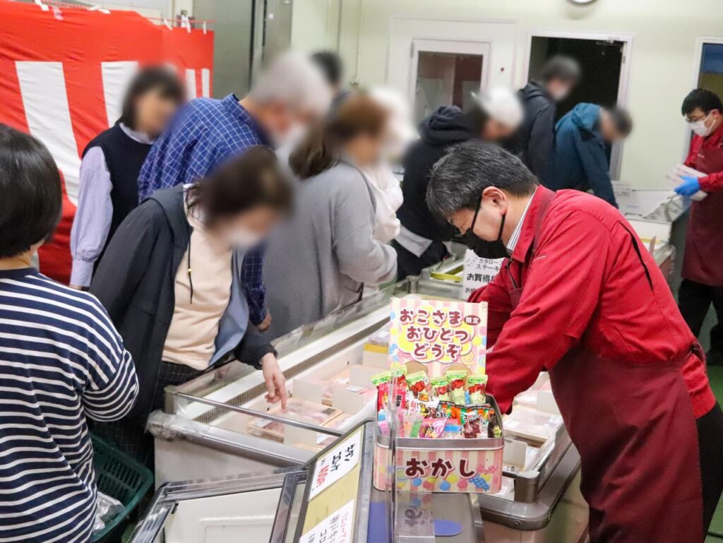 安いのは数量限定商品や目玉商品だけではありません。どの商品も“卸値”ならではの価格設定で、見ているだけでワクワク。実際にケースをのぞき込む来場者の手が次々と伸びていくのも印象的でした。