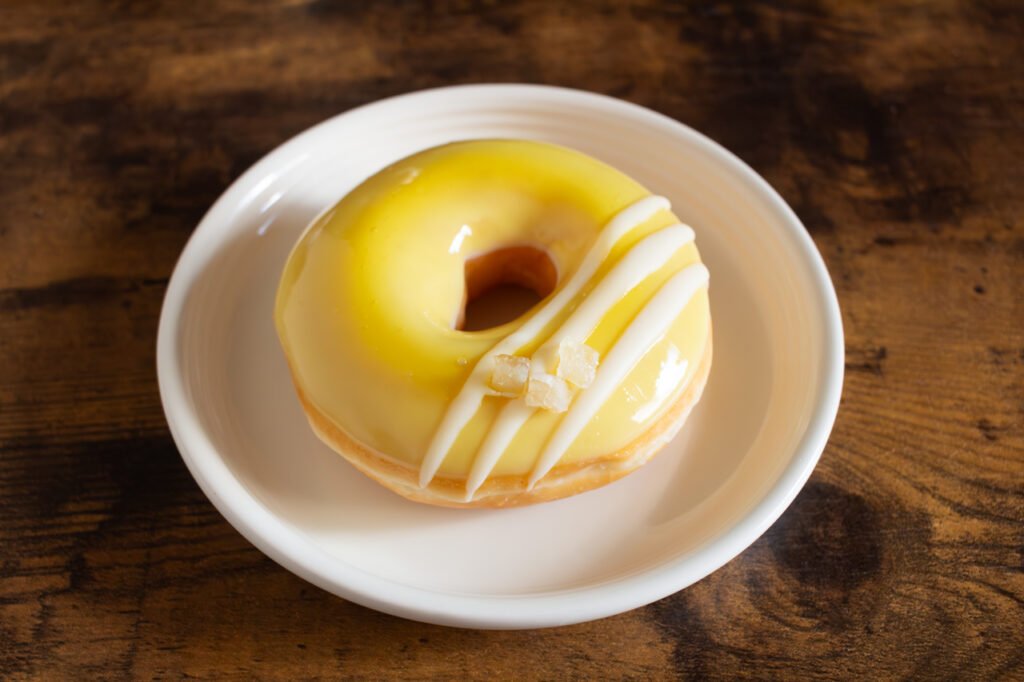 「スプリング レモネード」は、オリジナル・グレーズド®をレモネード風味のナパージュで包んだ、見た目にも爽やかなドーナツ。ひと口食べると、やさしい生地の甘さのあとからレモネードの風味がじんわり広がります。酸味は控えめ。甘酸っぱさがあと味をすっきりとまとめてくれます。