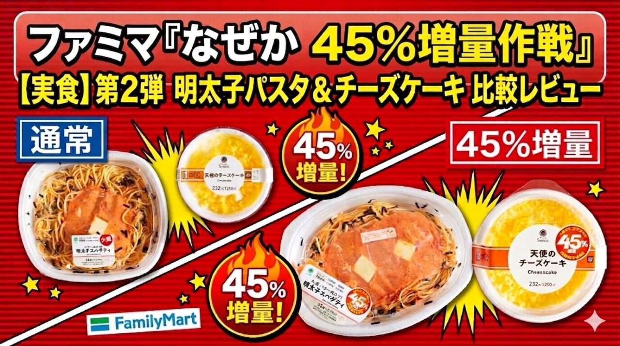 2026年3月24日からファミリーマートで「うまくて、ドでかい!お値段そのまま なぜか45%増量作戦(以下、なぜか45%増量作戦)」が開催中です。毎回大好評の増量キャンペーン。今回はファミリーマート創立45周年にちなんで、なんと過去最大となる45%の増量……!コスパ最強といっても過言ではない“圧倒的なお得”が話題になっています。