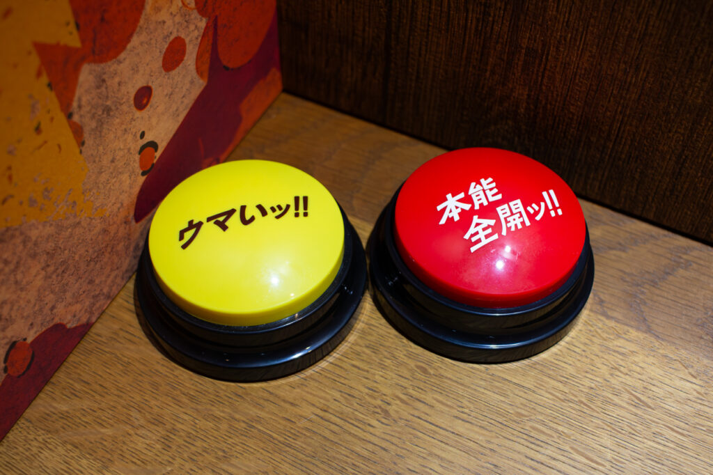 テーブルには、思わず童心に帰ってしまう“魅惑のボタン”も設置。感情をボタンで表現できるユニークな仕掛けで、食事の楽しさをさらに盛り上げてくれます。