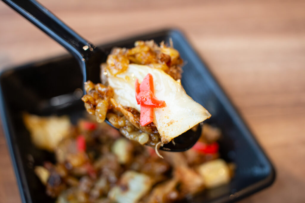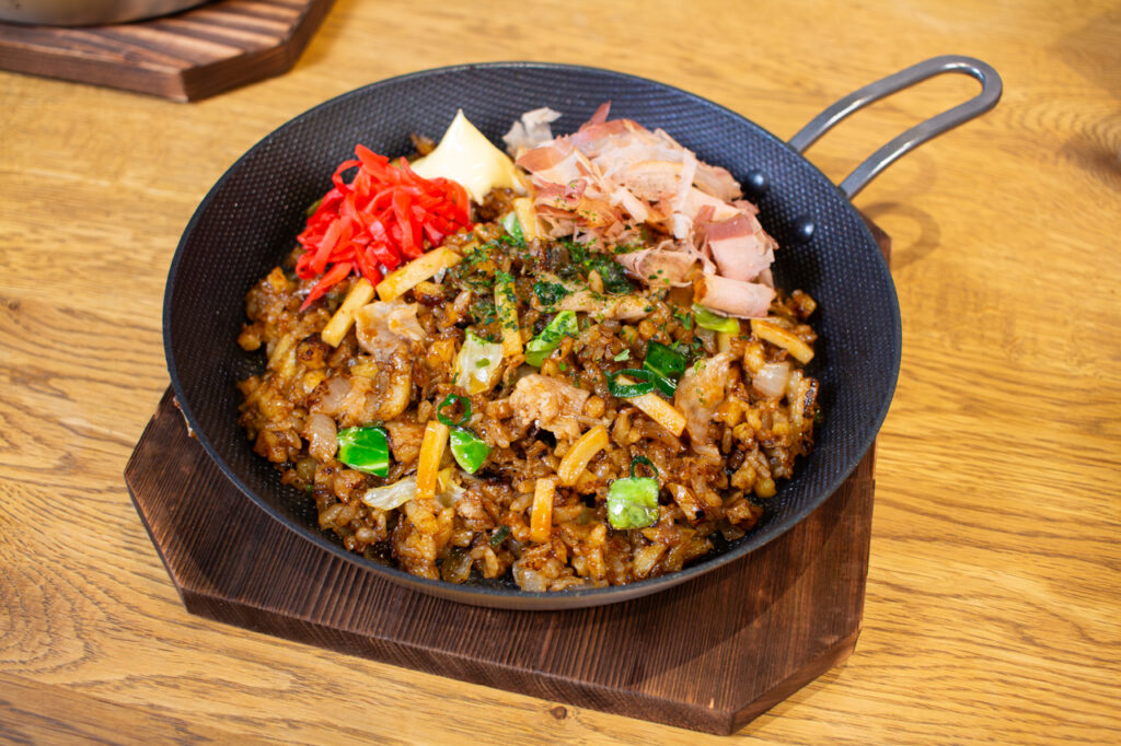 ソース味と同じように、野菜の食感がアクセントなっています。うどんメシに重なる野菜と豚肉の旨みも相まって、味わいが単調にならず、最後のひと口までおいしく楽しめます。