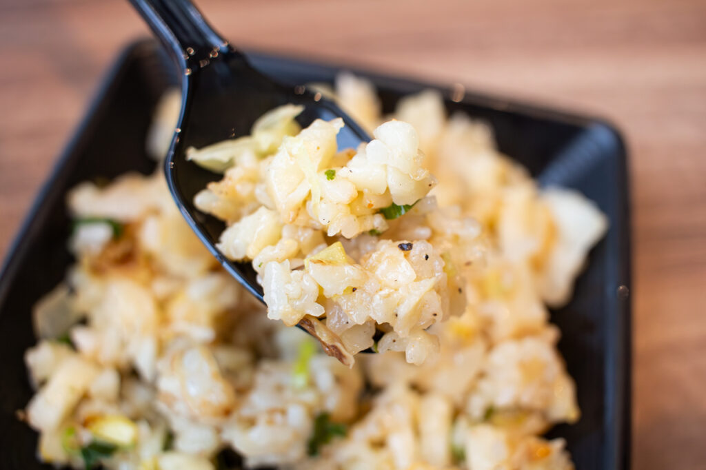 にんにくと20種類以上のスパイスをきかせた「丸亀うどんメシ やみつきねぎ塩味」。“ねぎ塩”と聞いて誰もが思い浮かべる王道の味をベースにしながらも、その枠に収まらない“ちょうどいいジャンキー感”が魅力です。ガツンとしたパンチのある味わいに、ひと口目から一気に食欲が加速します。