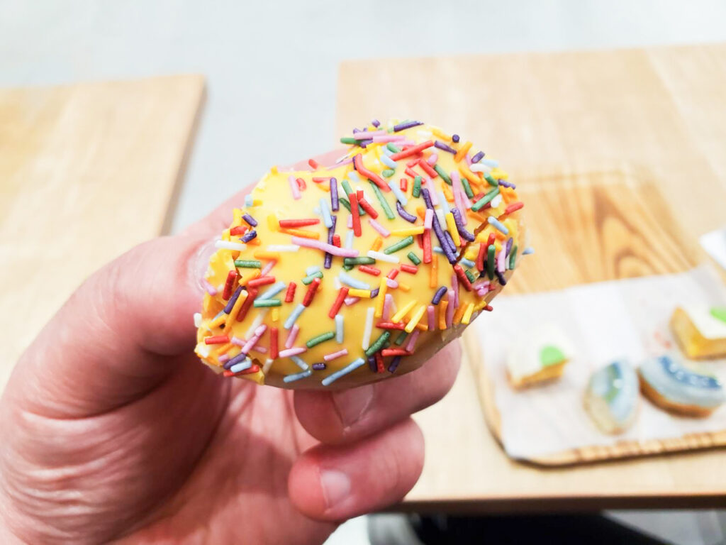 カスタード風味のコーティングとカラフルスプレーが生み出すパリパリ食感が心地よく、やさしい甘さで子どもから大人まで楽しめる味わいに仕上がっています。